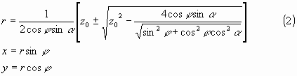 Applicando dei piani di taglio sul cono iperbolico ad una altezza Z0 e sotto un angolo α, si ottengono a secondo dei parametri diverse curve ovoidiali.